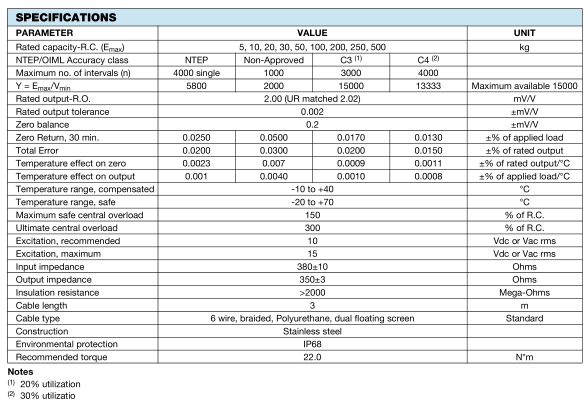 美國特迪亞Tedea-Huntleigh 355-500kg稱重傳感器參數資料(Parameter data):