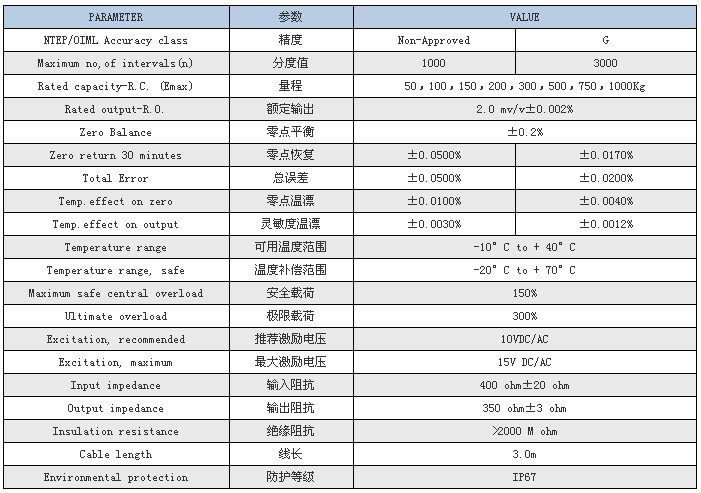 ——————————特迪亞616-150kg稱重傳感器產(chǎn)品參數(shù)表——————————