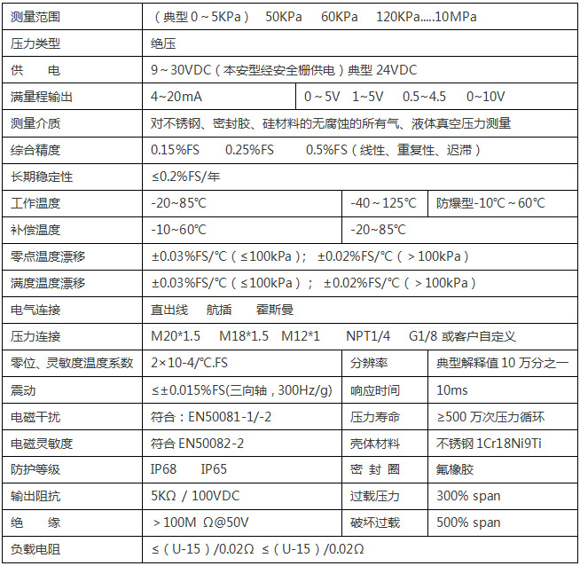 系列產(chǎn)品采用了德國HELM壓力傳感器硅疊硅技術(shù)、高精度集成壓阻力敏元件、利用國際先進的微型化制作與封裝工藝,進行了