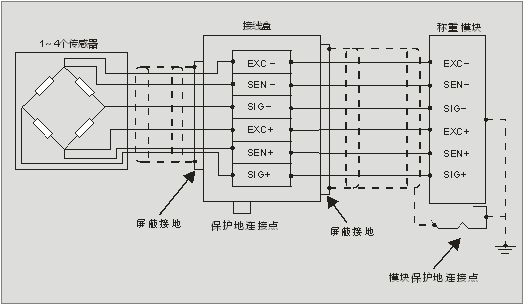 注意:如果遇到接線盒端子是接四線制稱重傳感器的,而稱重傳感器又是六線制引線的,這時可以采取的措施就是六變四接