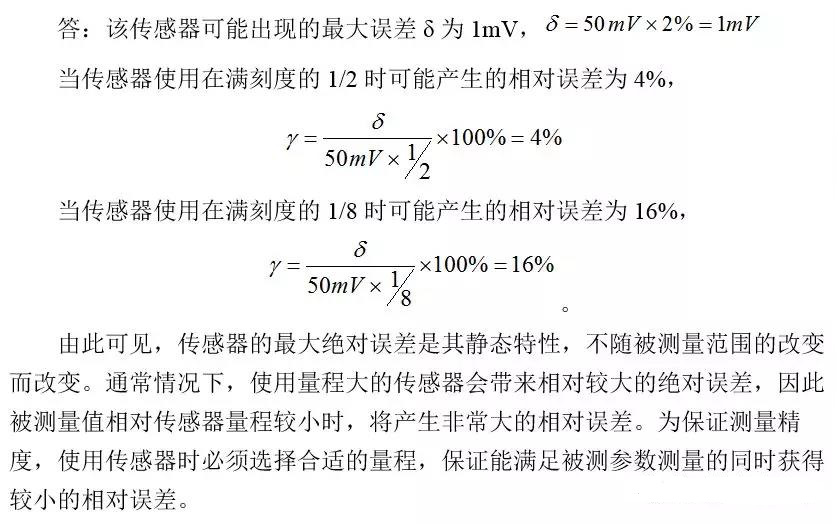 和1/8時(shí)計(jì)算可能產(chǎn)生的相對誤差。并由此說明使用傳感器選擇適當(dāng)量程的重要性。