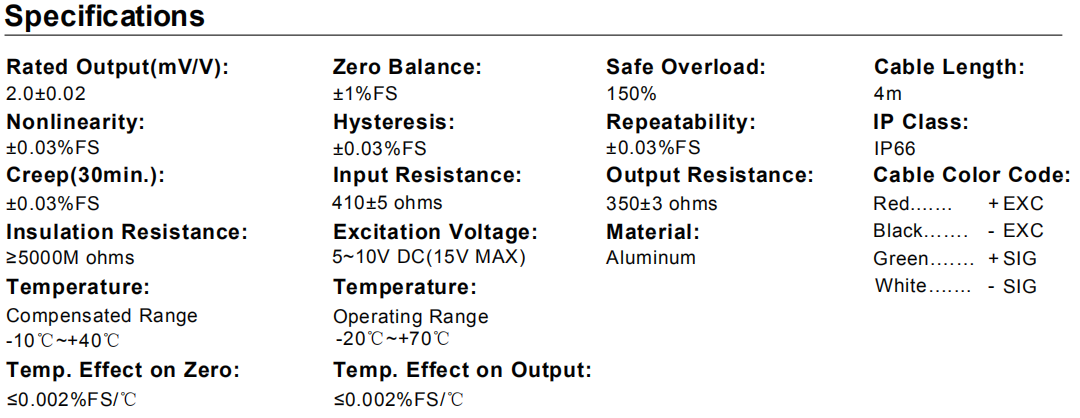 SMT-50N/SMT-100N稱重/測力傳感器技術(shù)參數(shù)