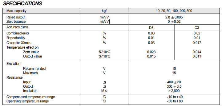 韓國CAS HBS-200L稱重傳感器技術參數: