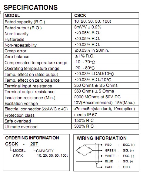 韓國奉信CSCK稱重傳感器所有型號: