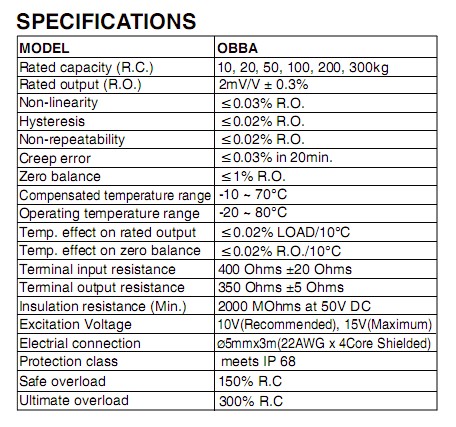 Bongshin OBBA-10kg稱重傳感器主要特性: