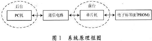系統主要由四部分組成:后臺計算機(上位機)、通信電路、前臺單片機(下位機)和存儲器(電子標簽),見圖1。其工作流程為: