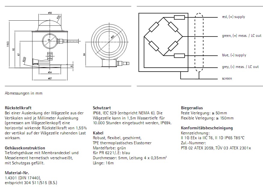 德國Sartorius PR6221/75TC3稱重傳感器特點應用: