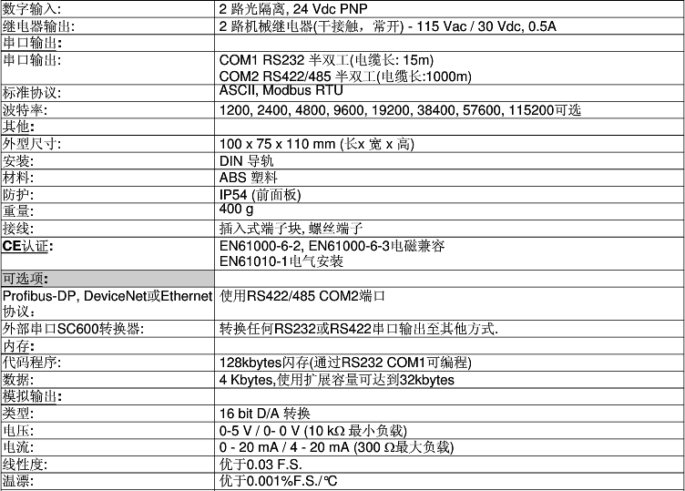 5、標準串口協議:ASCII、Modbus RTU;可選協議:Profibus-DP、DeviceNet、Ethernet