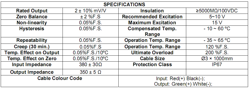 額定負載:5-10-20-30-50-100-200-300-500-1000-2000公斤