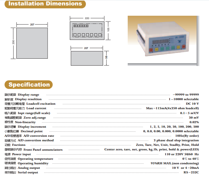 臺灣JIHSENSE JS-2200稱重顯示控制器規(guī)格: