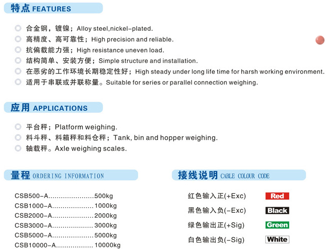 CSB-A傳感器,志美CHIMEI CSB-A稱重傳感器規格: