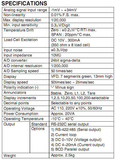 產品名稱:Bongshin BS-7220稱重儀表,韓國奉信BS-7220稱重顯示儀表