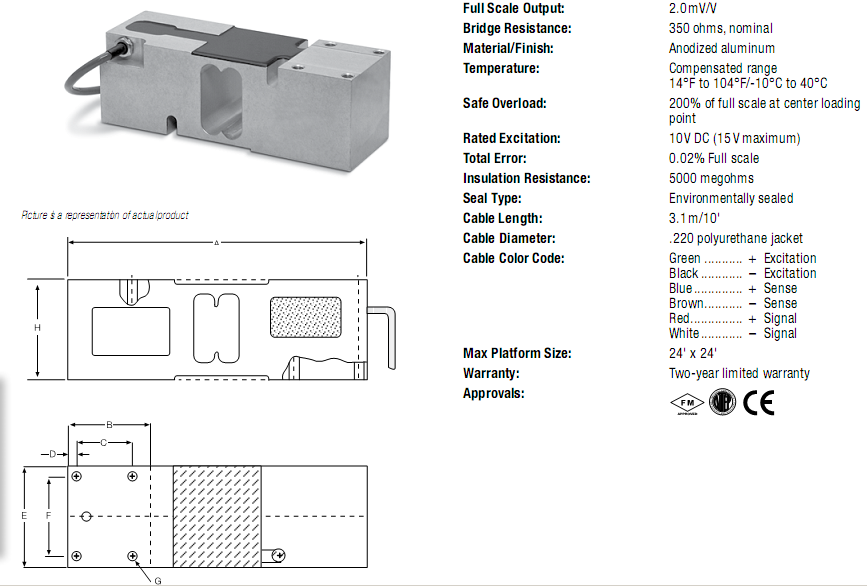 安全過載:200%滿量程的中心裝車點