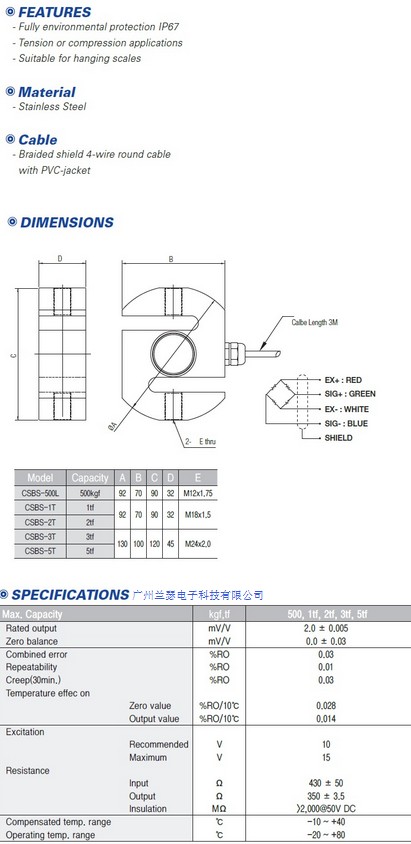 韓國CURIOSITY CSBS拉壓力稱重傳感器采用合金鋼,不銹鋼材質膠密封防護處理,安裝容易,使用方便,適用于吊秤,配料秤,機改秤等電子測力稱重系統.額定載荷50kgf100kgf150kgf200kgf300kgf500kgf1tf2tf3tf5tf10tf