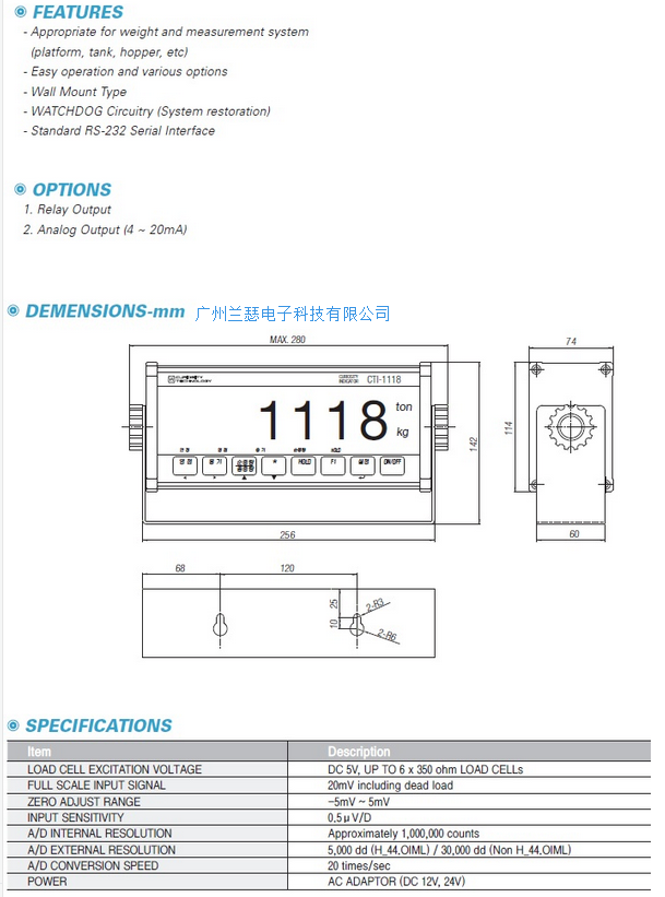 韓國CURIOSITY CTI-1118稱重顯示控制儀表產品參數尺寸