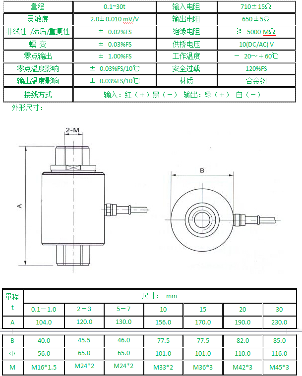 產品類型:稱重傳感器/拉壓力柱式傳感器