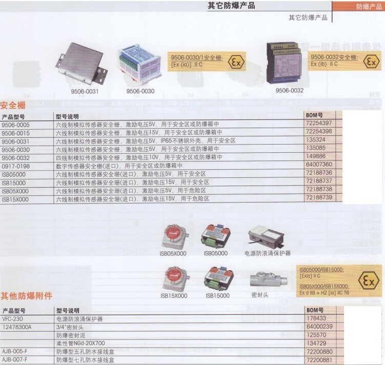 產品編號 防爆標志 適用危險區域 防爆合格證號