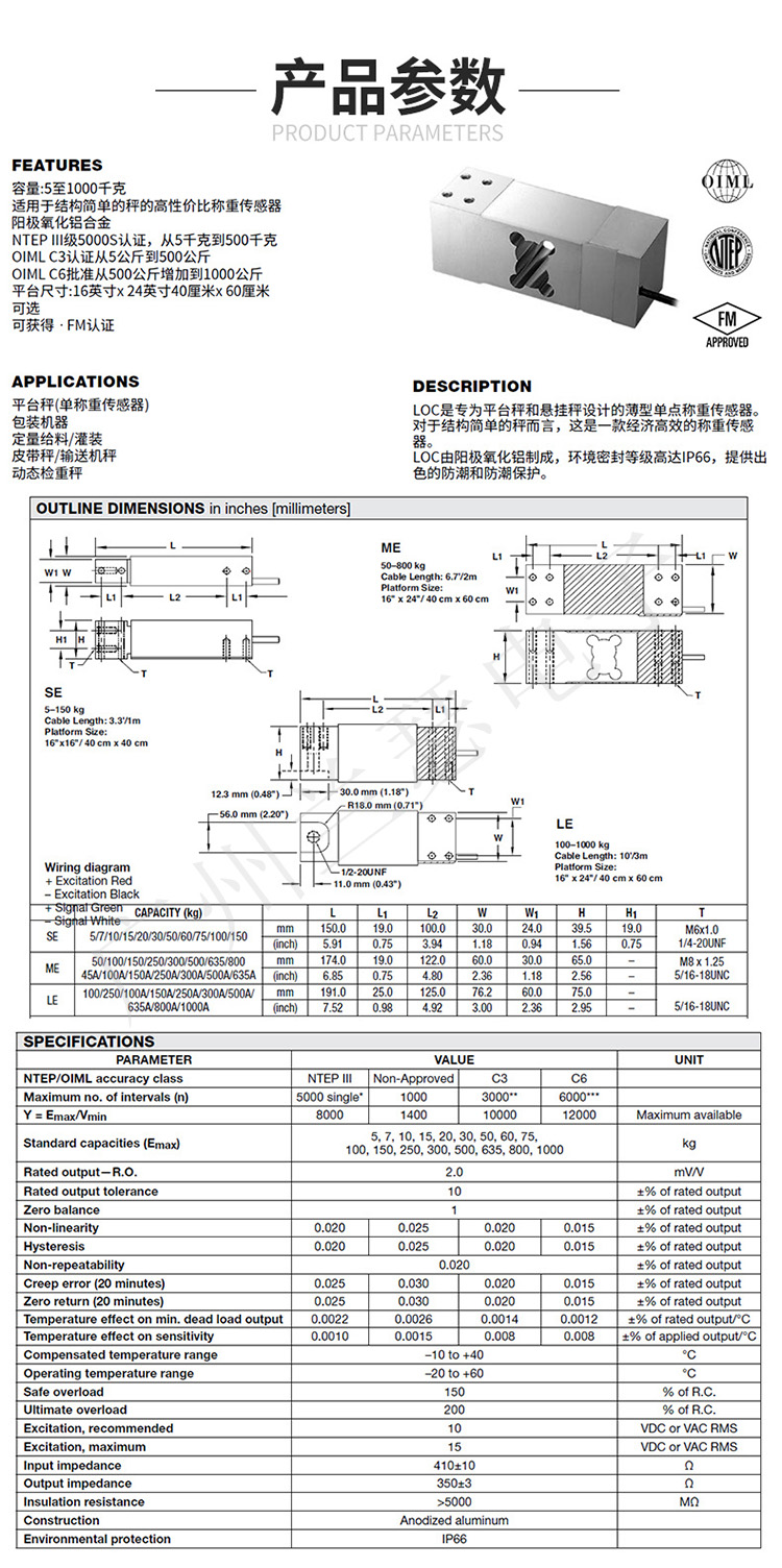 美國Celtron LOC-30kg稱重傳感器產品參數: