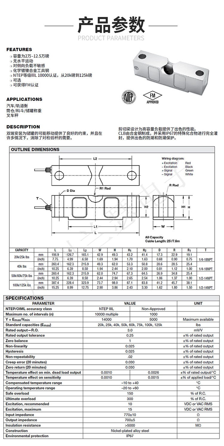 | CLB(20KLB-125KLB)稱重傳感器,美國Celtron CLB剪切梁式傳感器 |