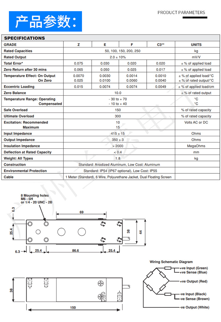 美國Tedea 1241-100kg稱重傳感器產品參數: