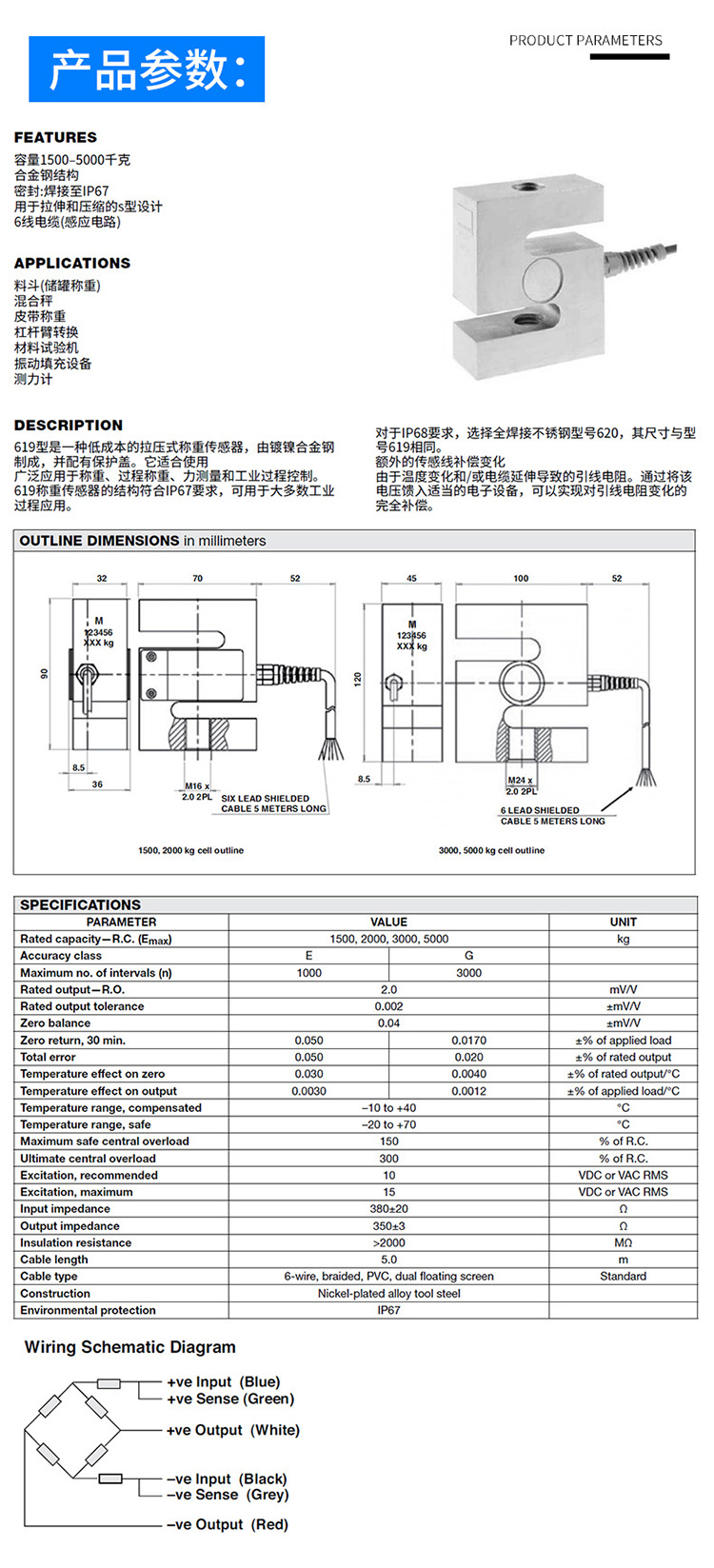 | 619-3000kg 619-3T稱重傳感器,美國tedea 619 S型傳感器 |