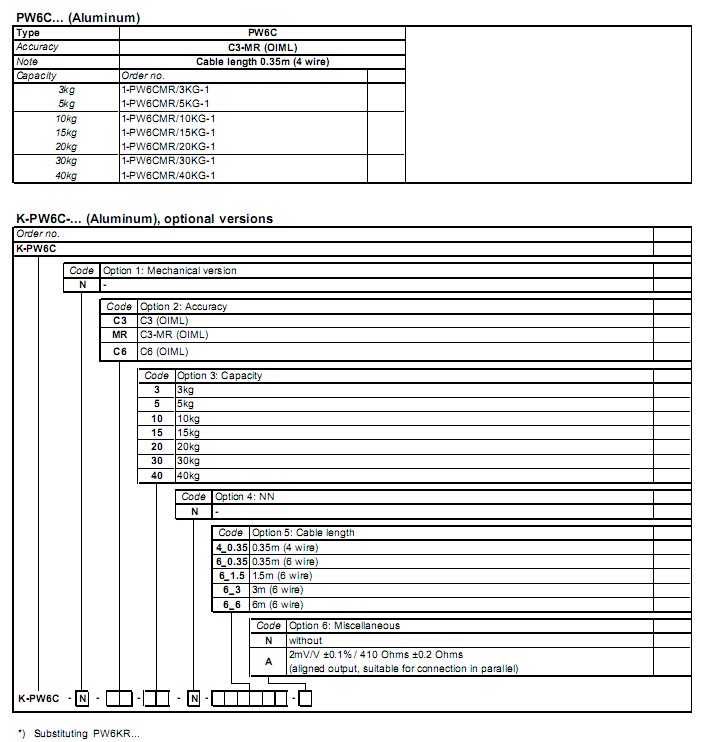 德國HBM PW6CC3傳感器系列所有型號: