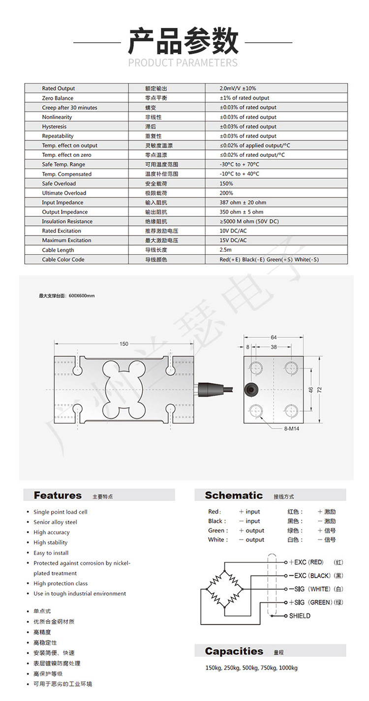 FSSV-1000Kg 單點式傳感器,容量1000kg