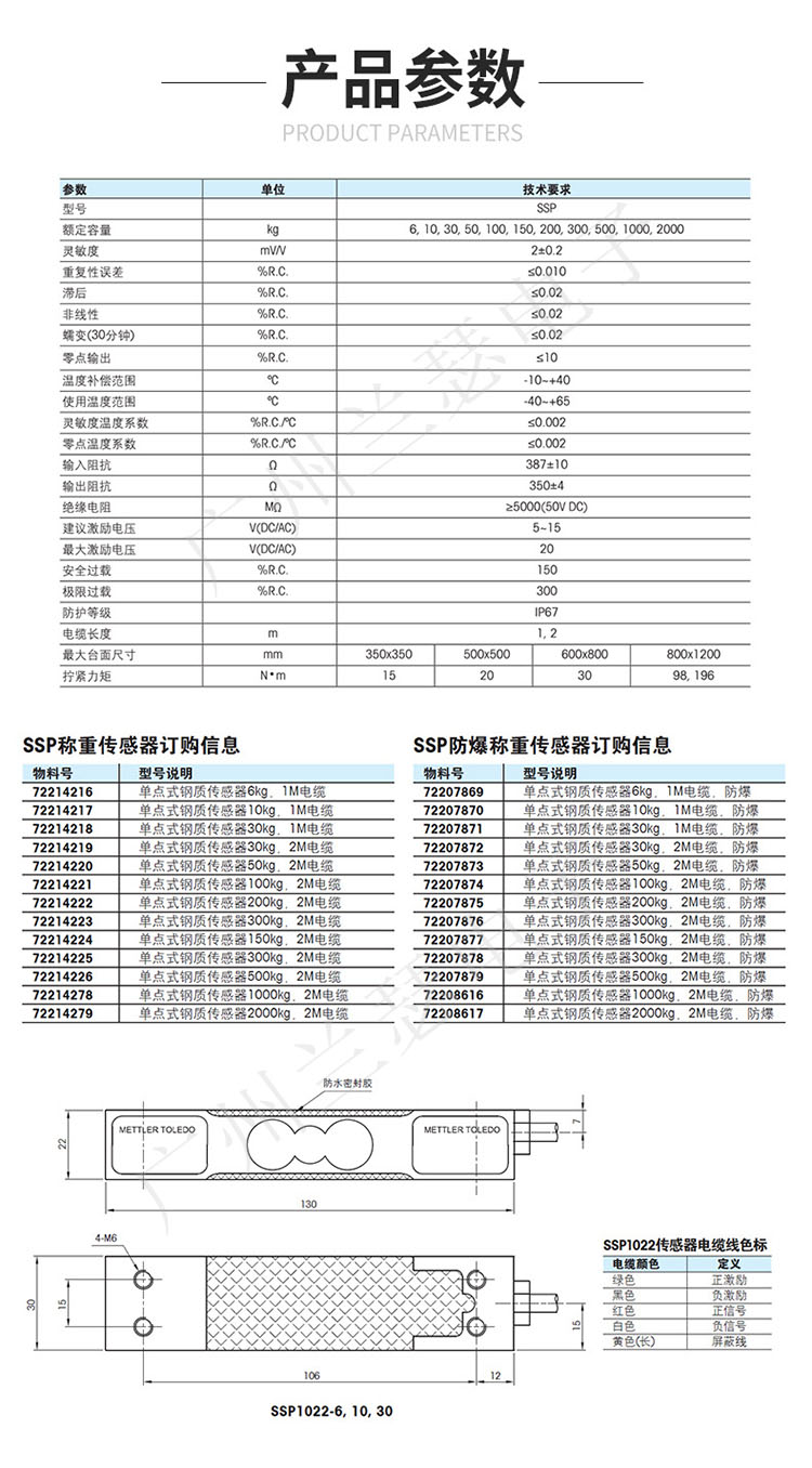 Mettler toledo稱重傳感器SSP1022-10kg所有型號: