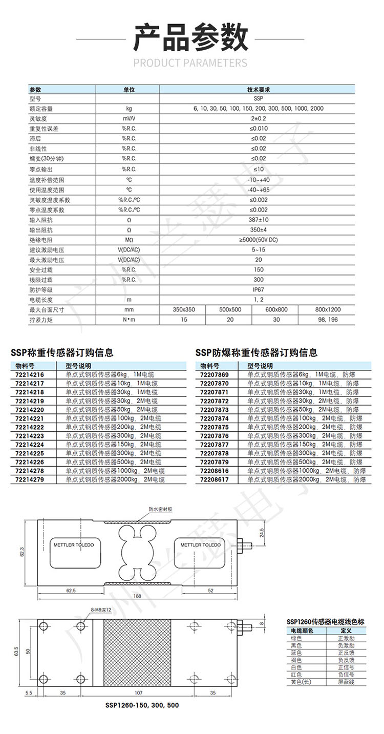 Mettler toledo稱重傳感器SSP1260-500kg所有型號: