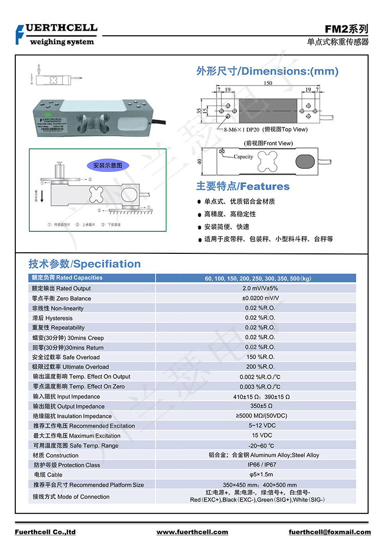 美國FUERTHCELL FM2-100KG稱重傳感器產品參數: