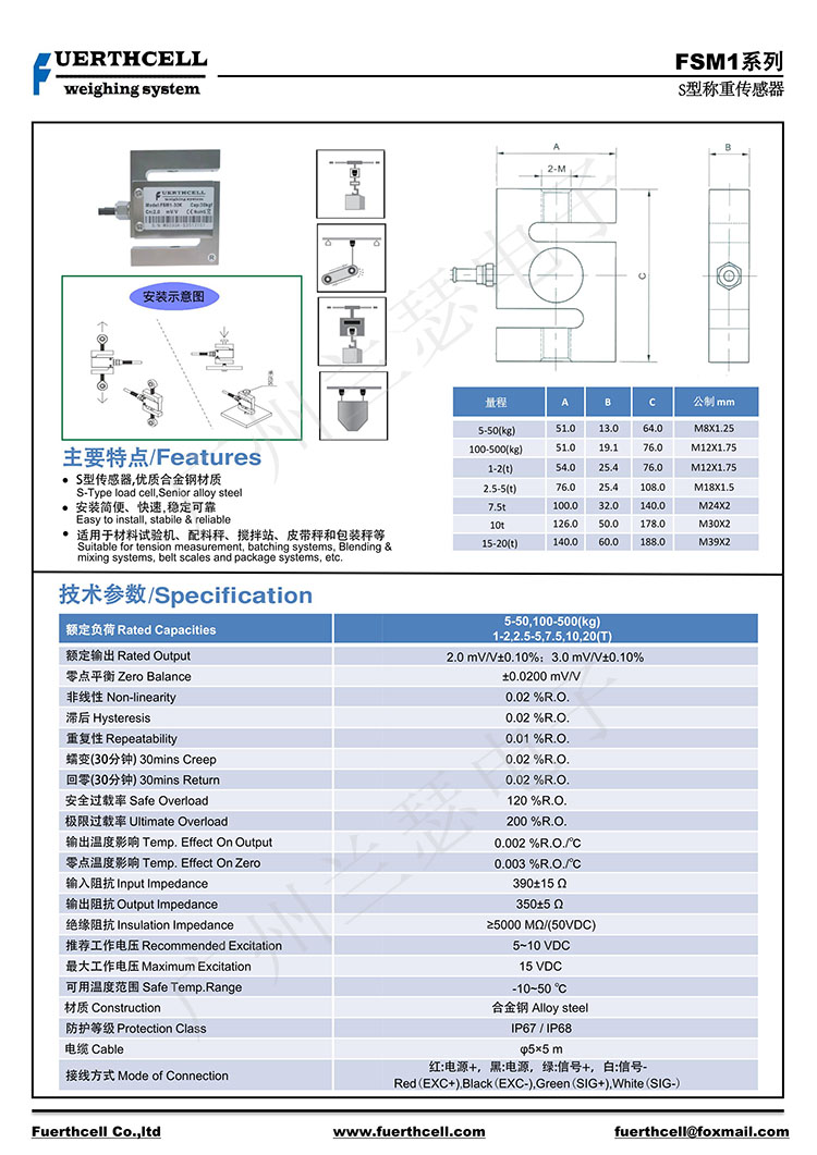 美國FUERTHCELL FSM1-100KG稱重傳感器產品參數: