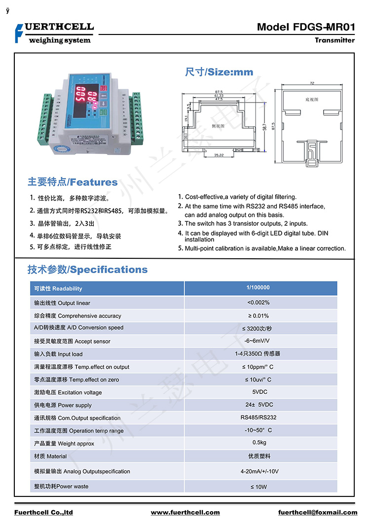 美國(guó)FUERTHCELL FDGS-MR01稱重儀表主要特點(diǎn):