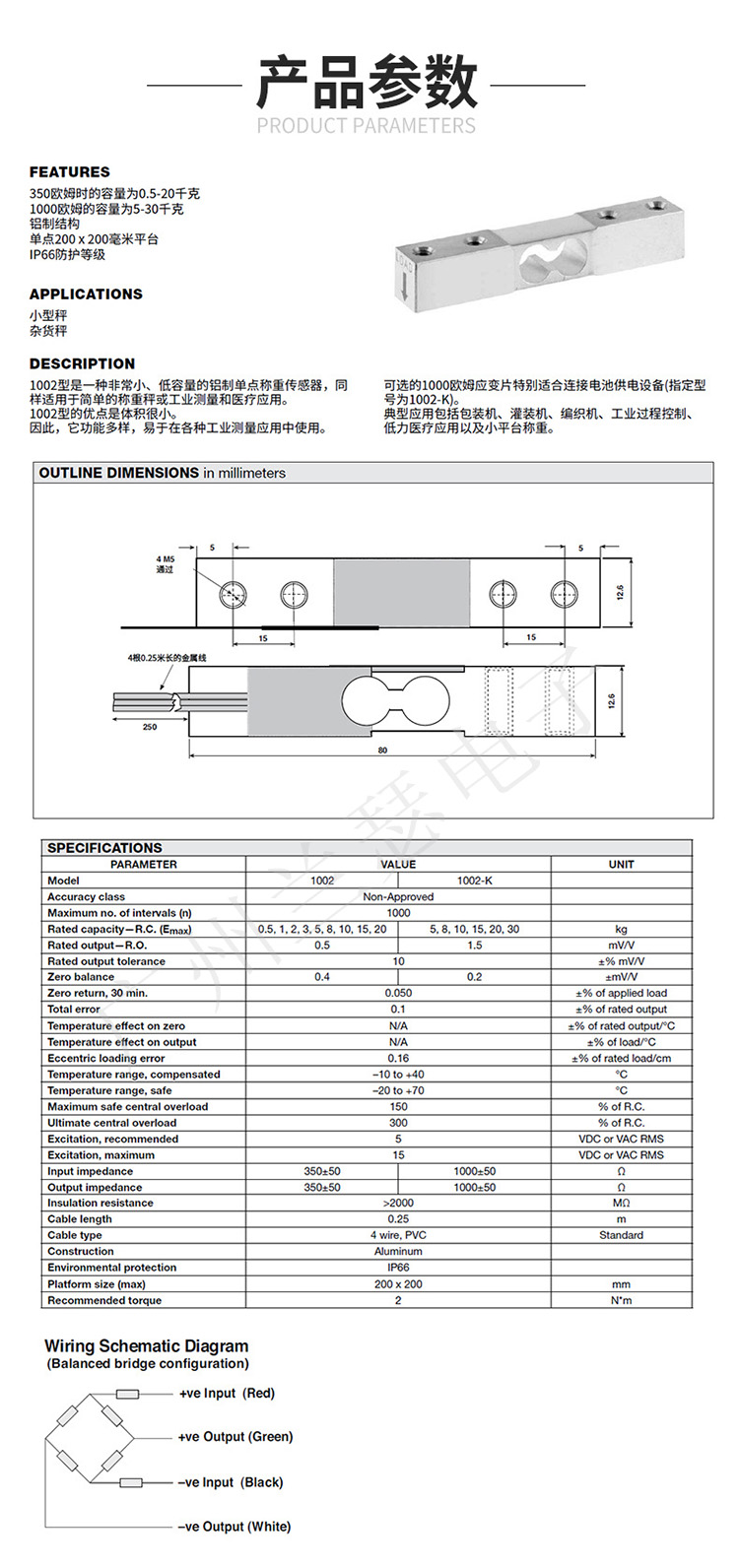 美國Tedea 1002稱重傳感器產(chǎn)品參數(shù):