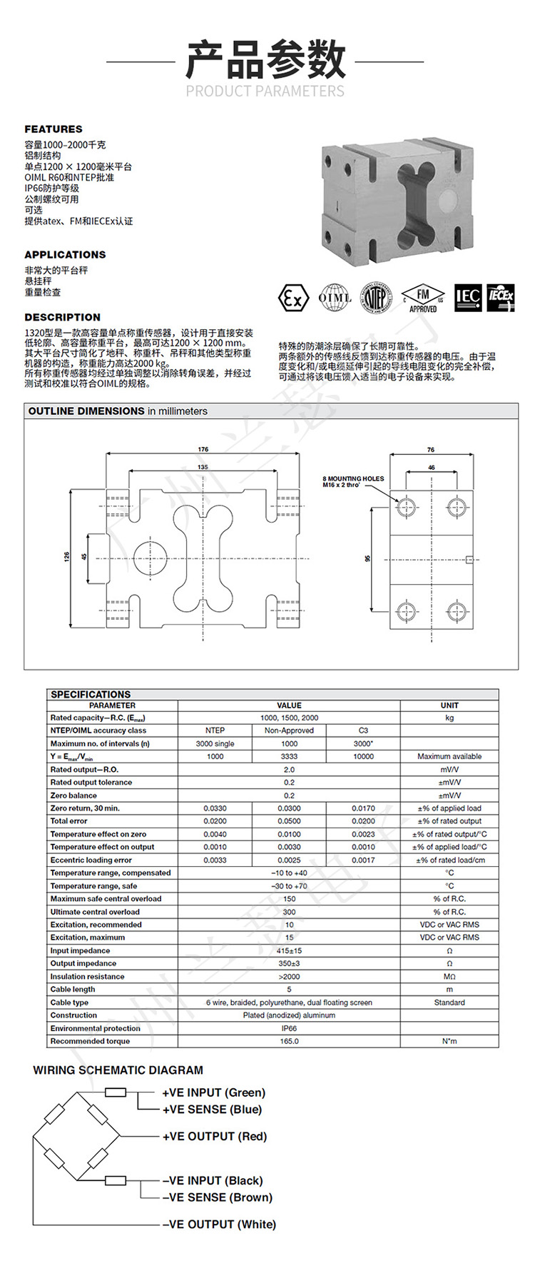 1320-1000kg稱重傳感器技術參數圖: