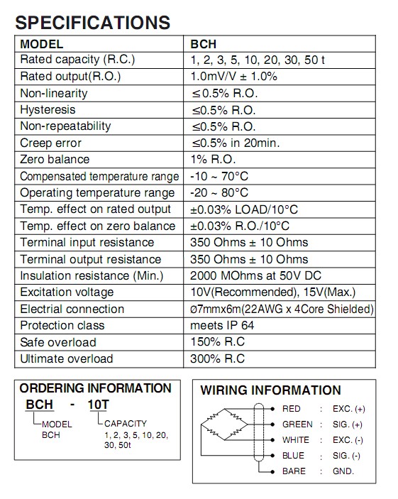 韓國Bongshin BCH-5t稱重傳感器技術參數: