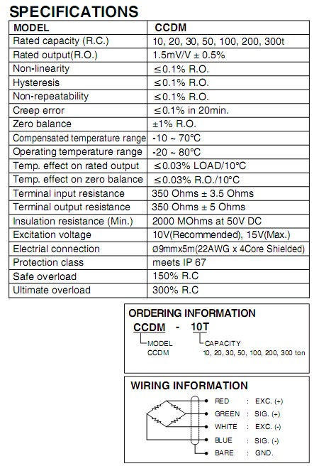 韓國Bongshin CCDM稱重傳感器主要特性: