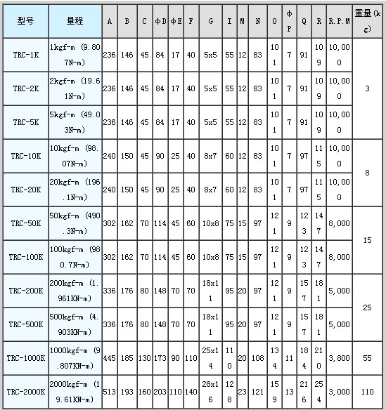 TRC-100kgf-m TRC-200kgf-m TRC-500kgf-m TRC-1000kgf-m TRC-2000kgf-m