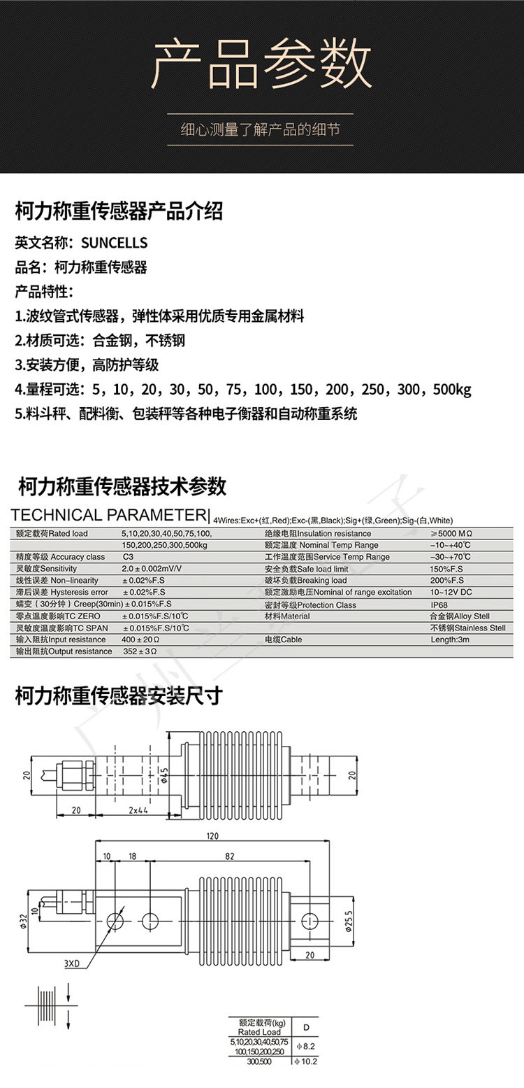 Transcell BSS系列波紋管請(qǐng)點(diǎn)擊:BSS-100kg稱重傳感器