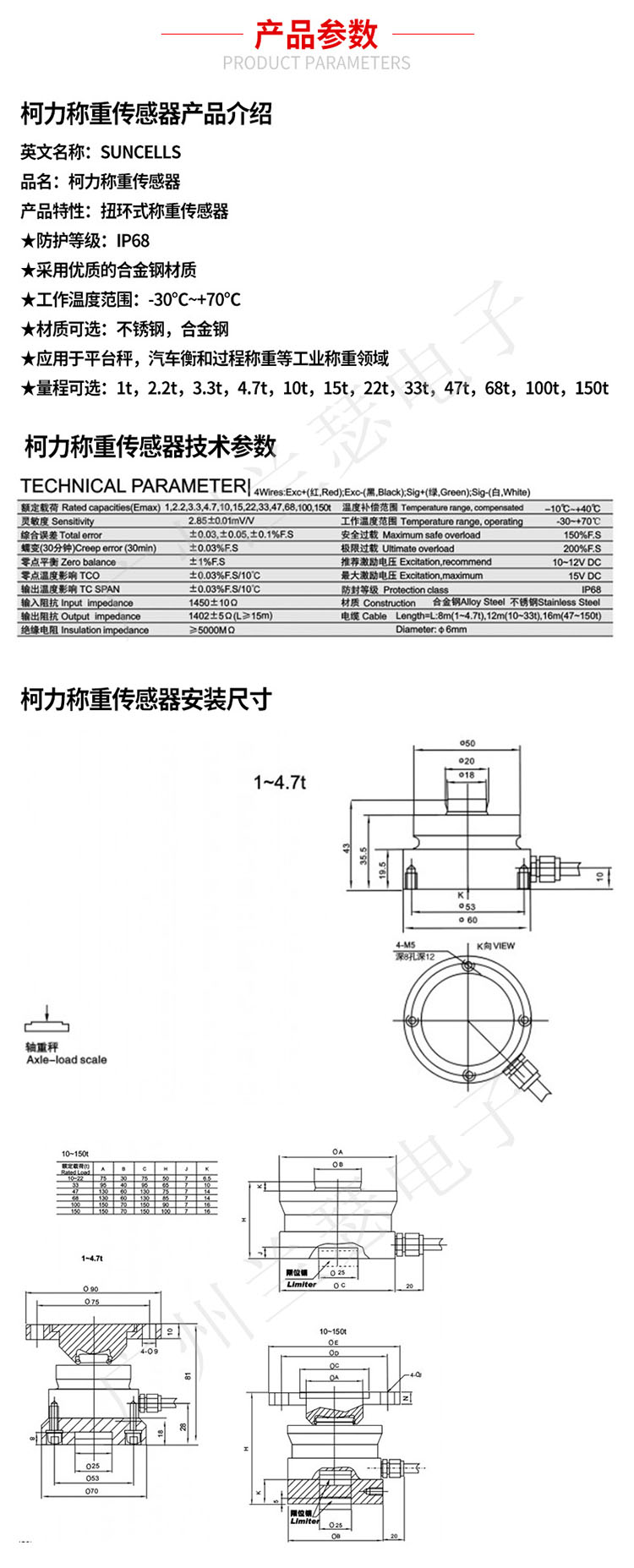 產品性質:扭環式傳感器,扭環式稱重傳感器