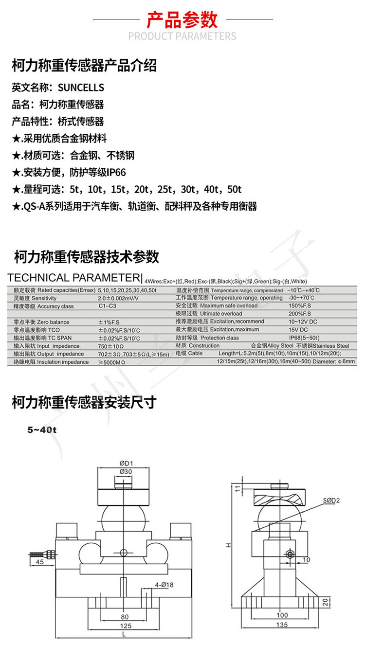SUNCELLS QS-D-20T稱重傳感器產品簡介: