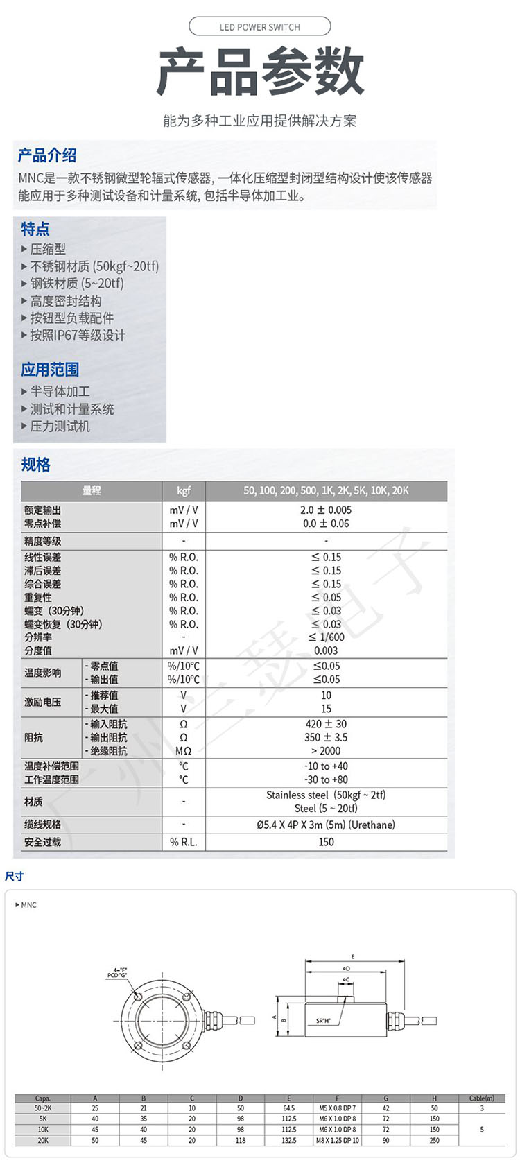 韓國(guó)CAS MNC-100L傳感器技術(shù)參數(shù):
