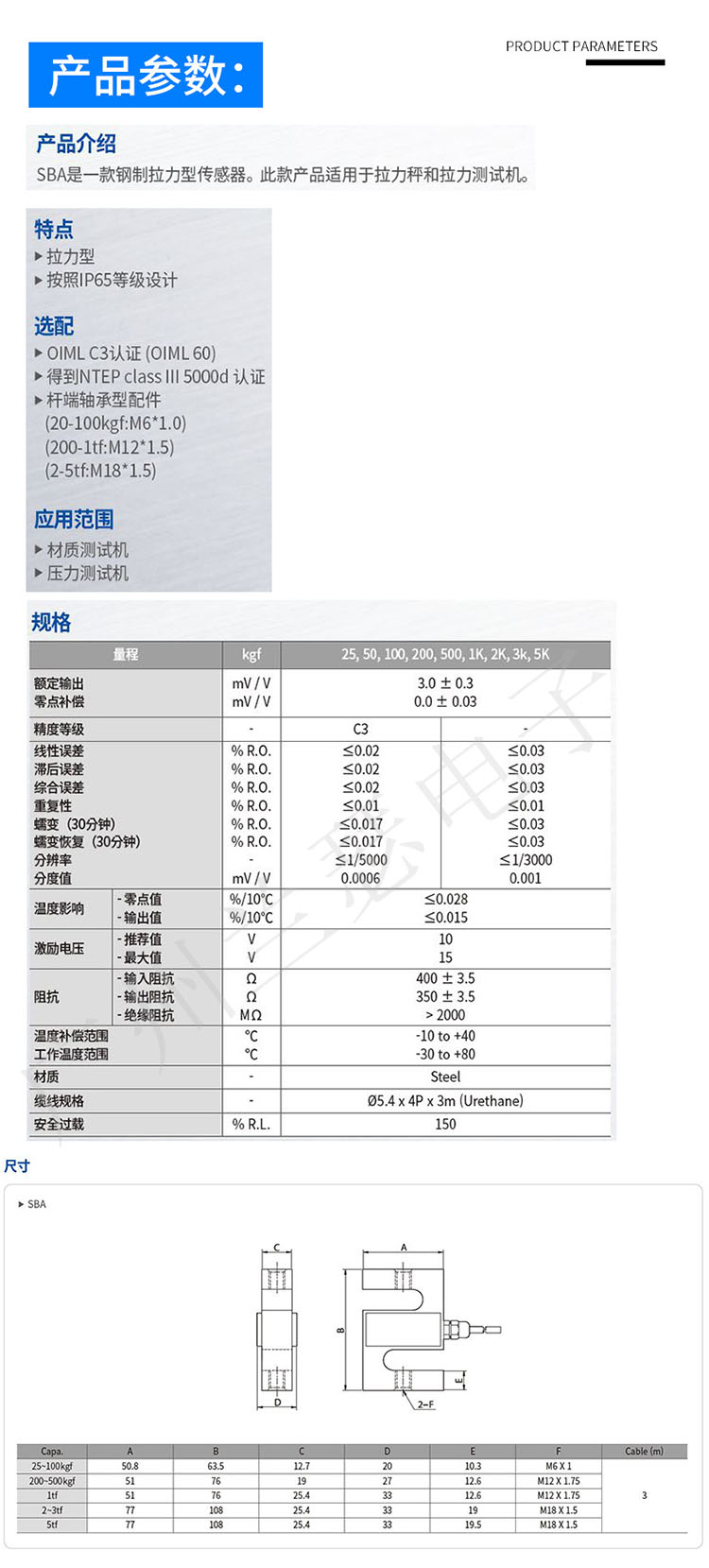 韓國CAS SBA-100L傳感器技術(shù)參數(shù):