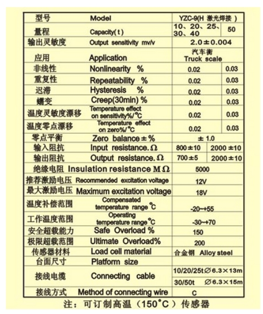 廣測GUANGCE YZC-9稱重傳感器技術參數