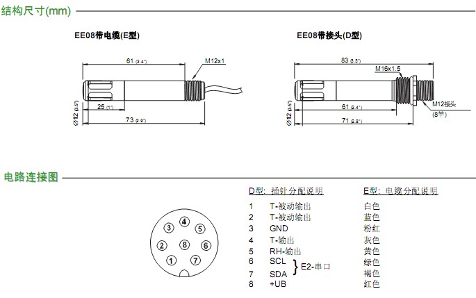 帶接頭溫濕度測量提供模擬信號(0-1/2.5/5V)和數字串口(E2串口)輸出。