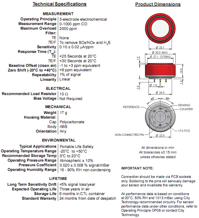 英國(guó)CITY 7E/F一氧化碳CO傳感器知識(shí)