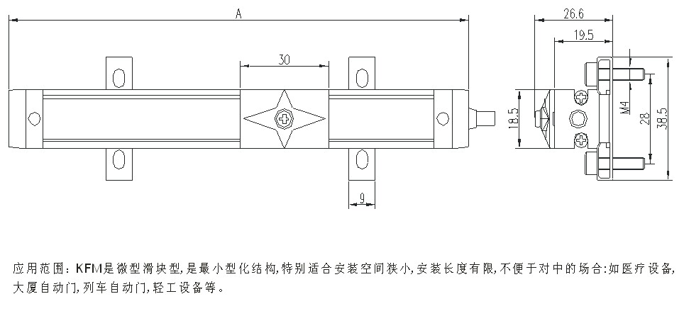 KFM微型滑塊位移傳感器,有效行程5mm300mm,兩端均有2mm緩沖行程,精度1%0.08%FS。外殼表面陽極處理,防腐蝕;內置導電塑料測量單元,無溫漂,壽命長;具有自動電氣接地功能。密封等級為IP54(向下安裝時IP57),有直接出線和五芯插頭插座輸出兩種選擇,可以適用在大多數通用場合,特別適用于安裝空間狹小的場合,難以保證對中的場合;允許極限運動速度為3m/s。