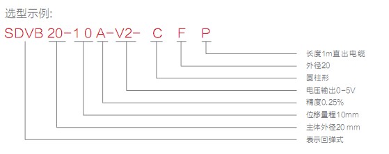屬性:SDVB20位移傳感器,SDVB20直流回彈式位移傳感器